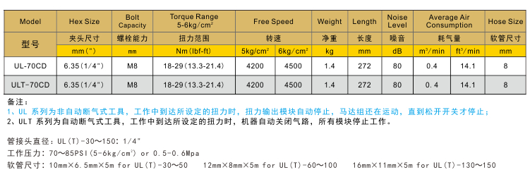 彎頭油壓脈沖定扭氣動起子UL-70CD/ULT-70CD