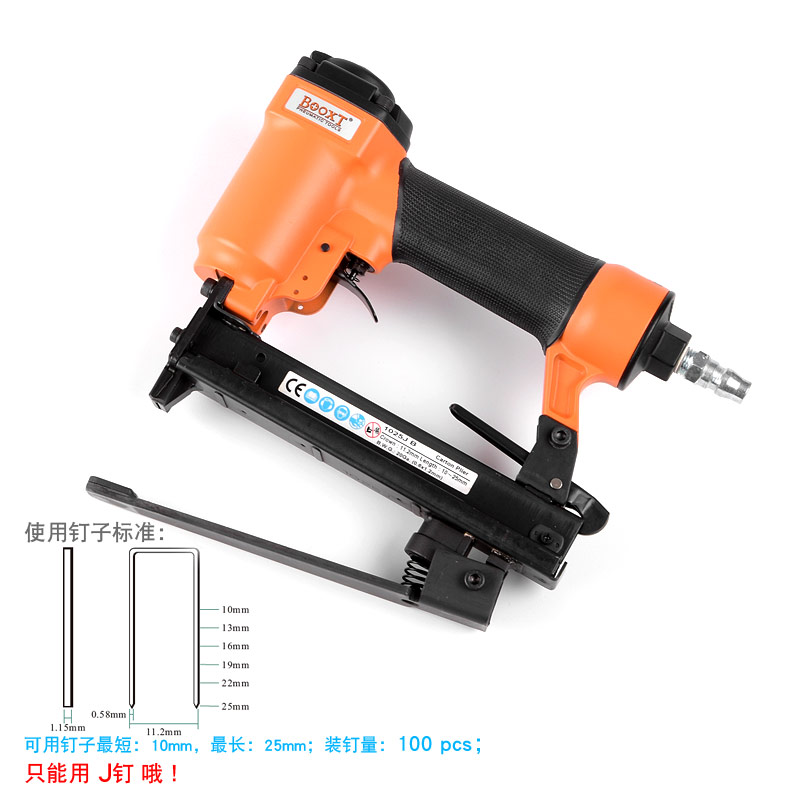 • 產(chǎn)品參數(shù): 特點(diǎn):碼釘打好后如釘如機(jī)一樣釘腳會(huì)打折;釘子寬度:11.2mm;釘子跨度:10mm;釘腳尺寸:0.58×1.15mm;使用釘子長度范圍:10-25mm;裝釘量:100個(gè);使用工作氣壓:0.6Mpa;推薦使用內(nèi)徑6.5mm氣管;平時(shí)多注意定時(shí)排放空壓機(jī)水份