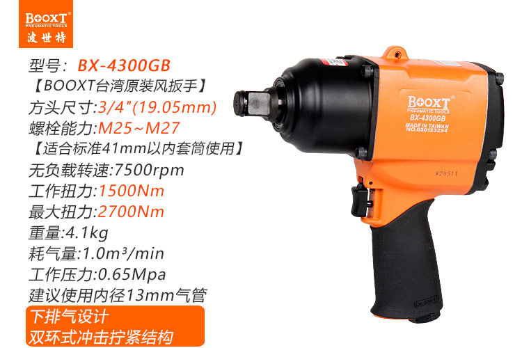 東莞市強(qiáng)勁五金工具有限公司提供臺(tái)灣BOOXT波世特品牌氣動(dòng)工具,臺(tái)灣中風(fēng)炮BX-4300GB廠家直銷(xiāo),首件享特價(jià)。咨詢熱線:4008301980
