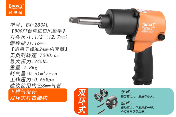 東莞市強勁五金工具有限公司提供臺灣BOOXT波世特品牌氣動工具,加長軸氣動扳手BX-283AL廠家直銷,首件享特價。咨詢熱線:4008301980
