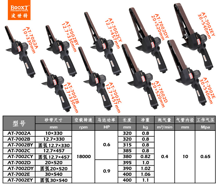 東莞市強勁五金工具有限公司提供臺灣BOOXT波世特品牌氣動工具,氣動砂帶機AT-7002BY廠家直銷,首件享特價。服務(wù)熱線:4008301980