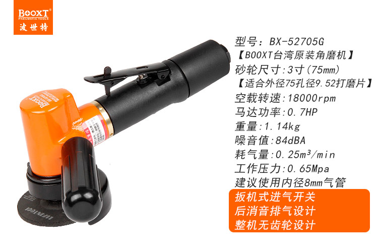 東莞市強(qiáng)勁五金工具有限公司提供臺(tái)灣BOOXT波世特品牌氣動(dòng)工具,3寸角向砂輪機(jī)BX-52705G廠家直銷,首件享特價(jià)。咨詢熱線:4008301980