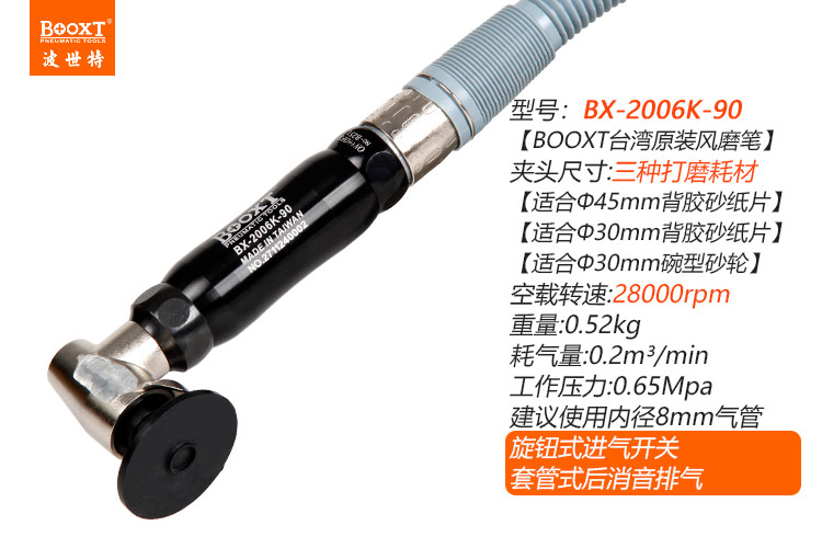 東莞市強(qiáng)勁五金工具有限公司提供臺(tái)灣BOOXT波世特品牌氣動(dòng)工具,彎頭氣動(dòng)風(fēng)磨筆BX-2006K-90廠家直銷,首件享特價(jià)。咨詢熱線:4008301980