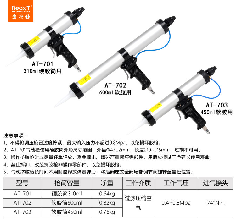 東莞市強勁五金工具有限公司提供臺灣BOOXT波世特品牌氣動工具,袋裝氣動玻璃膠槍AT-703廠家直銷,臺灣制造,首件享特價。咨詢熱線:4008301980