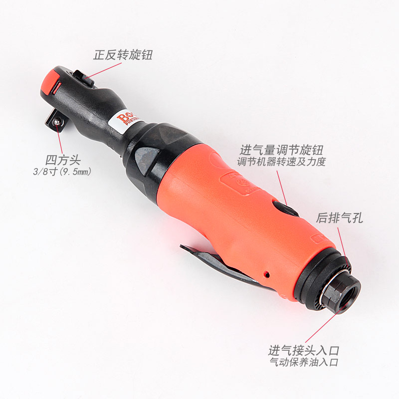 氣動棘輪扳手特點:(重力壓鑄外殼,強度更高不變形,提高耐用度)