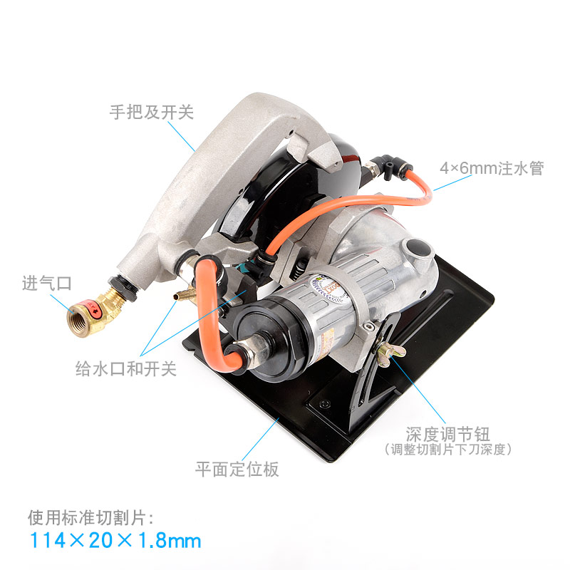以壓縮空氣為動(dòng)力,沒(méi)有觸電的危險(xiǎn)(傳統(tǒng)用電,石材切割都需要注水,用電非常不安全)。